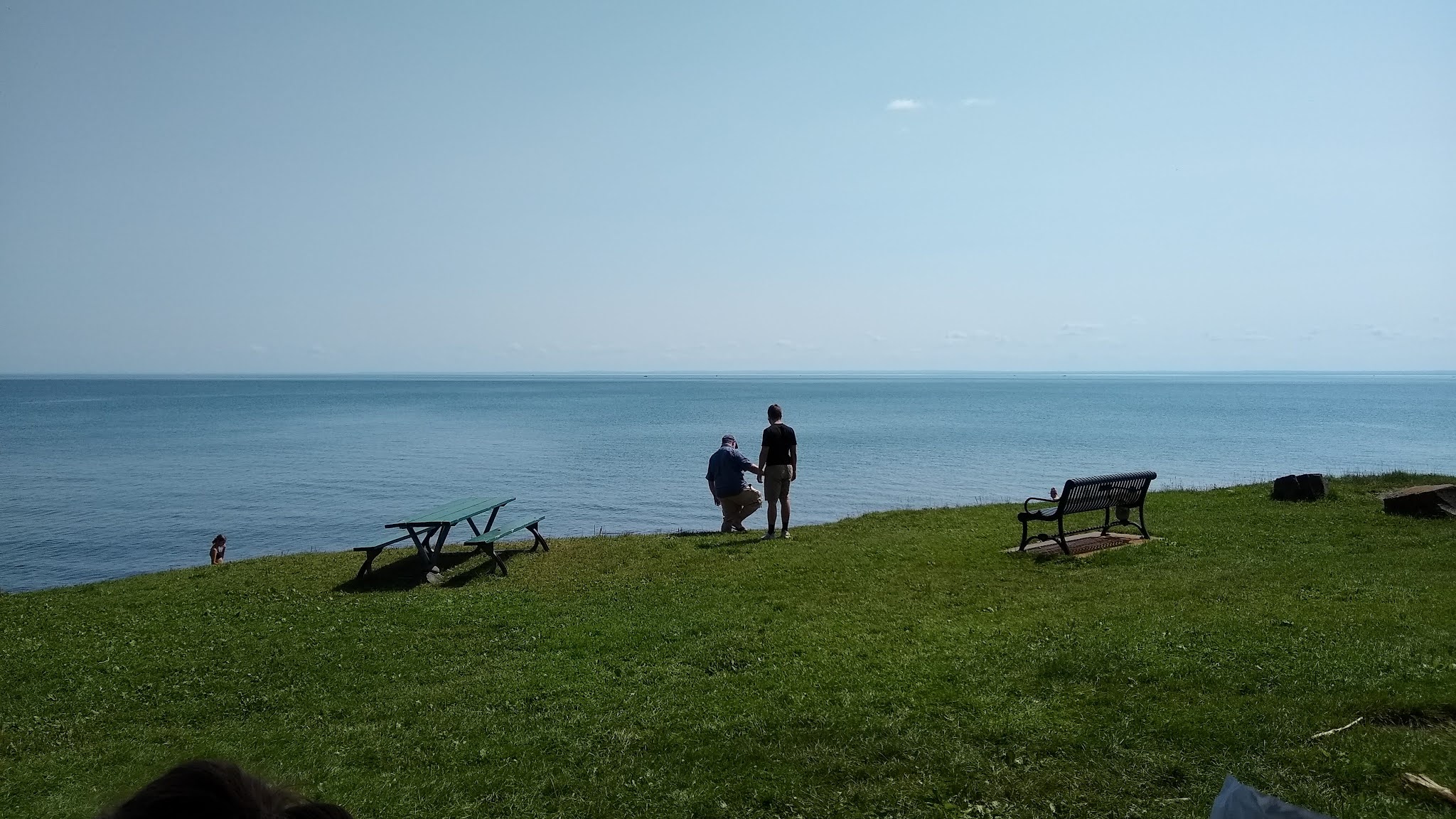 Arrivati a Presque Isle, MI, ci siamo avventurati per una passeggiata su questo carinissimo molo. Be', io e mia figlia ci siamo fermate al termine di questa passerella liscia. Là dove la passerella forma l'angolo la strada si faceva difficile e non abbiamo voluto continuare. I due uomini, uno dei quali in ciabatte, hanno invece proseguito.